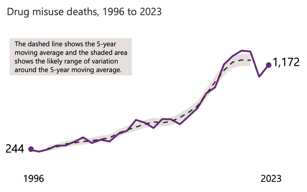 The National Records of Scotland has reported a 10% rise in the number of drug related deaths in 2023 to 1,172.